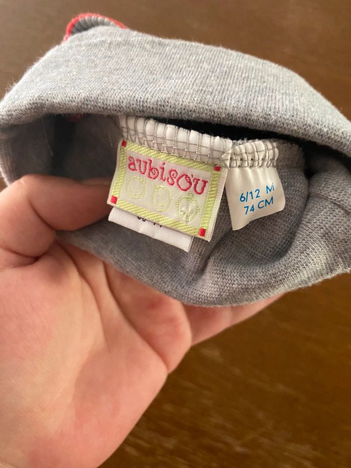 Bonnet gris et rouge 74cm 6/12mois marque aubisou en très bon état #vetement6moisVero66xx