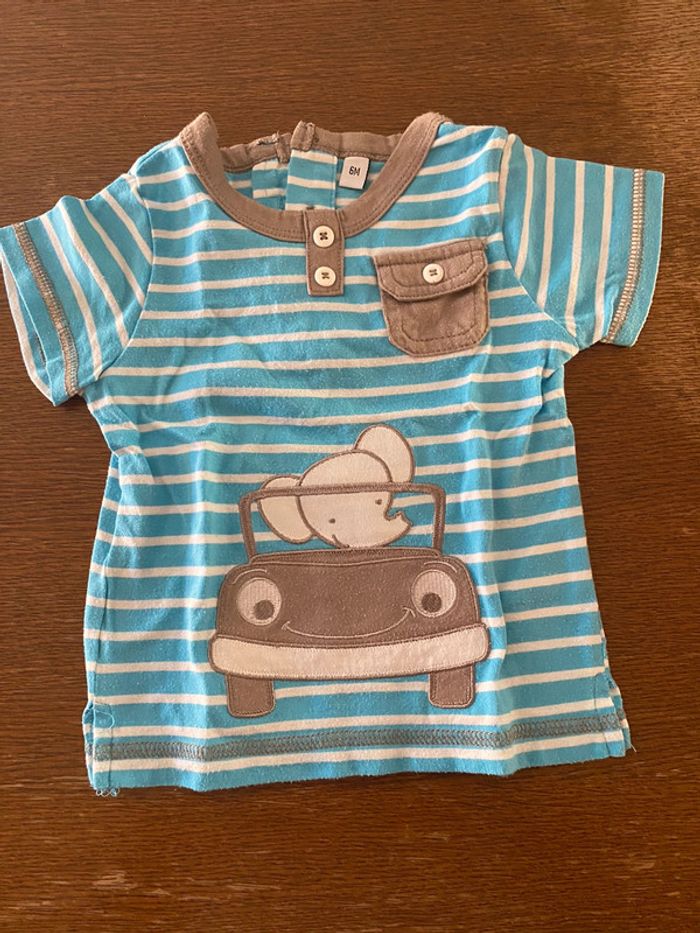 T-shirt manche courte bleu,blanc et marron éléphant 6 mois en très bon état #vetement6moisVero66xx