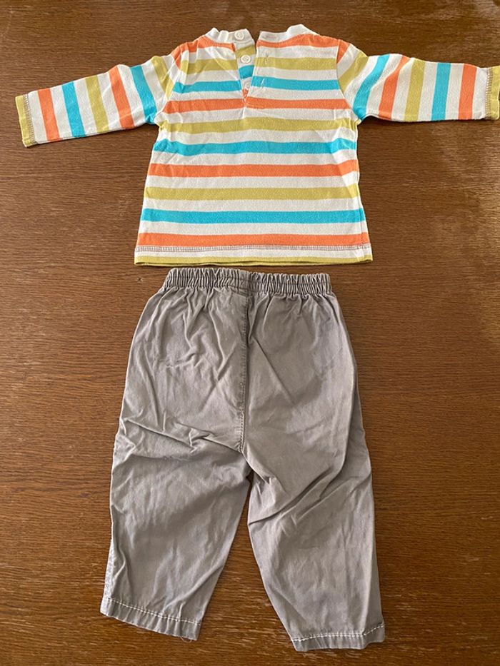 Ensemble t-shirt manche longue multicolore + pantalon marron 6 mois en très bon état #vetement6moisVero66xx