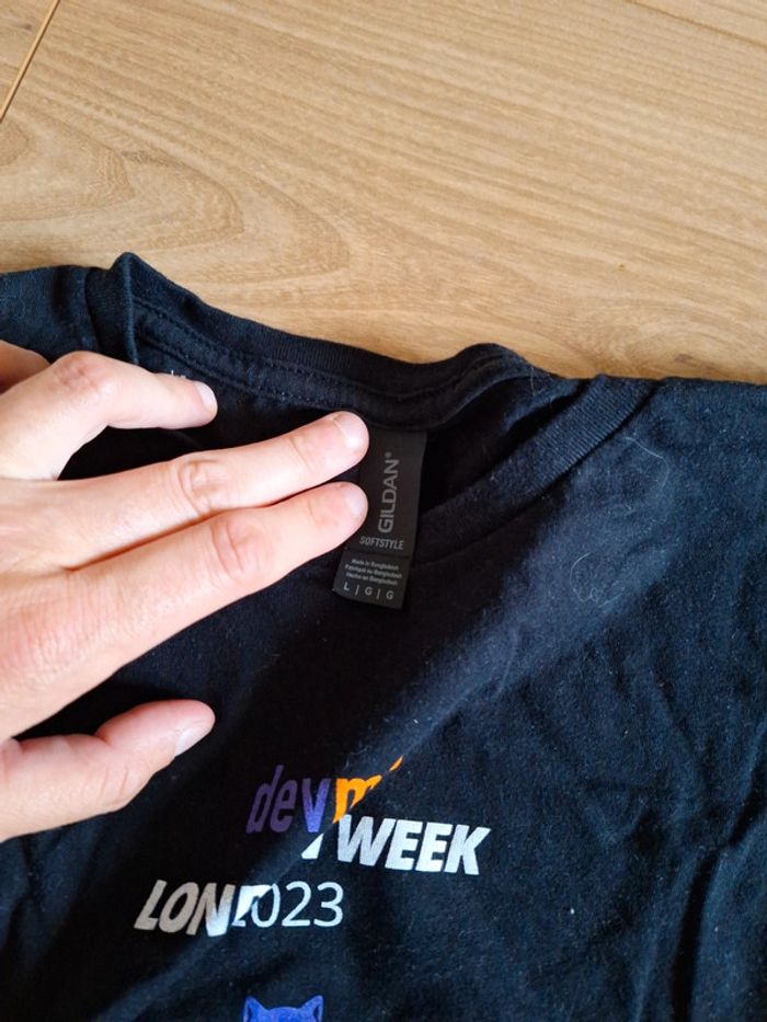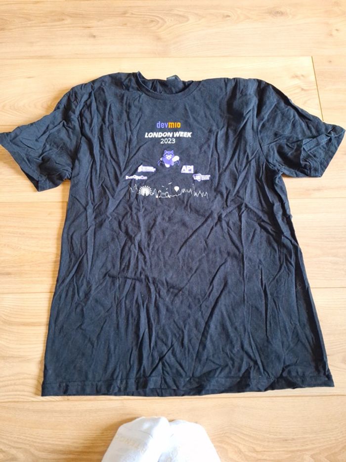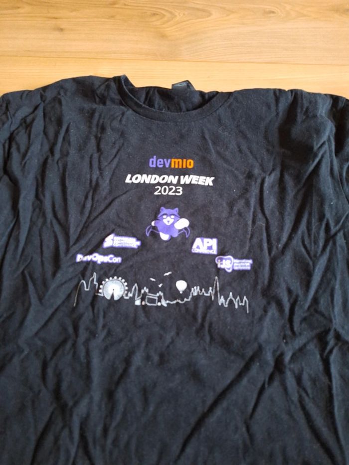 Tee-shirt manches courtes DevMio London week 2023 DevopsCon API Conférence International JavaScript Conférence Serverless Architecture Conférence Taille L
