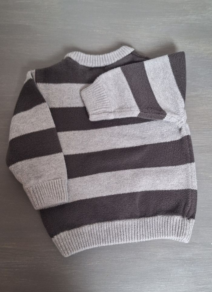 GARÇON 9 MOIS N°1140 Gilet rayé, zip 2 tons gris 100% coton Taille 9 mois Kiabi 3€ #kelly_garçon9mois