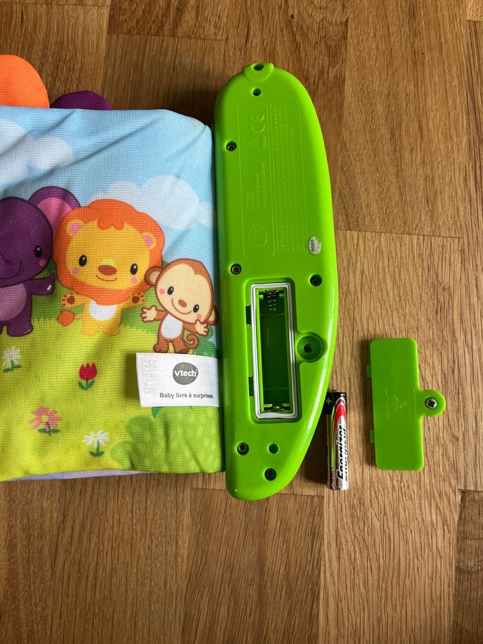 Baby livre surprise Très bon état Fonctionne avec 1 pile LR 03 non incluse Il manque l’anneau pour l’accrocher