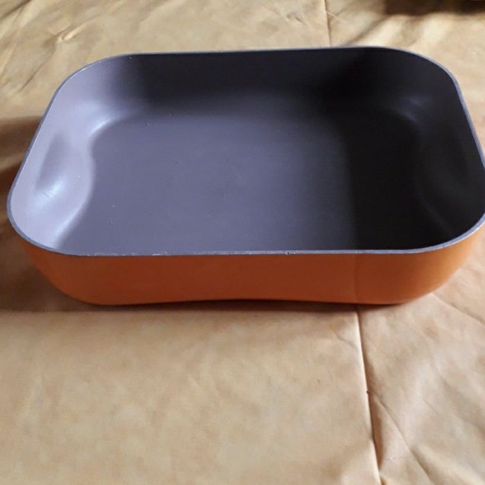 Plat rectangulaire creux vintage orange longueur 34 cm profondeur 5 cm fond antiadhésif reste en bon état général pour son âge 🙂