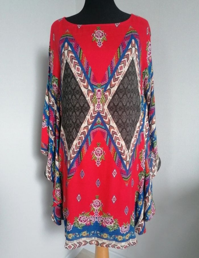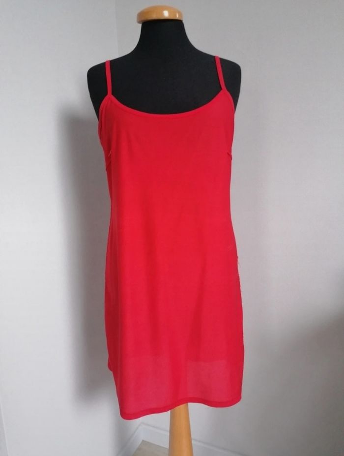 Très jolie robe confortable avec un fond de robe rouge bretelles réglables. Peut également se porter sans fond de robe comme tunique ou sur un maillot de bain. Promod S/M