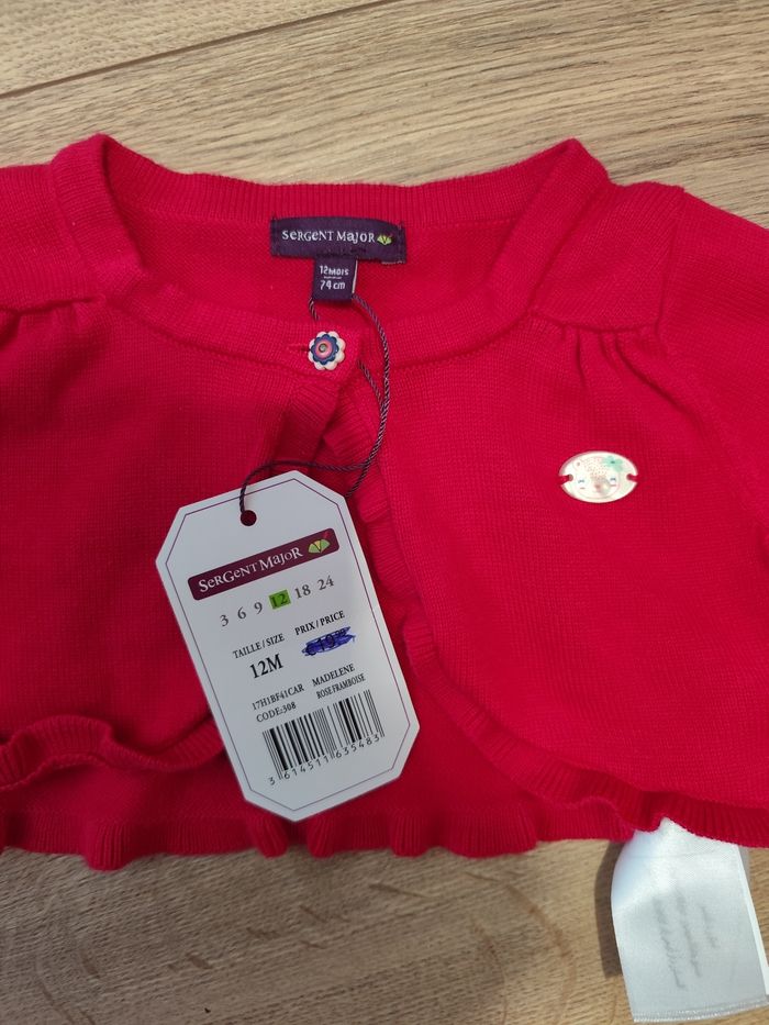 Joli boléro neuf, avec étiquette. 12 mois Rose framboise 100% coton Sergent Major