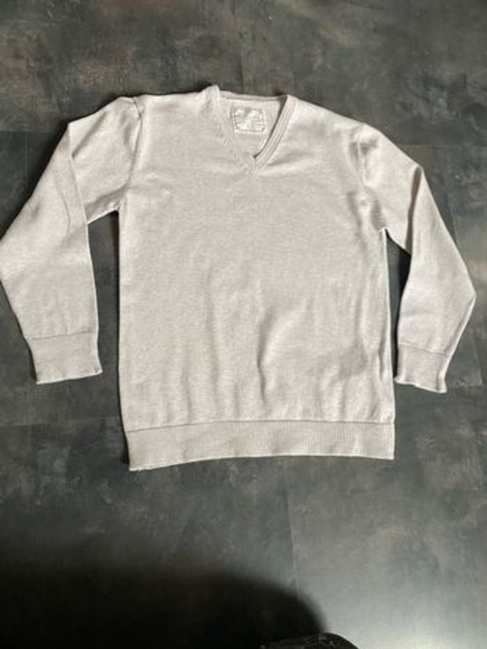 Très joli Pull chiné beige gris Encolure V Coudières démarquées point de riz Bords côte doublés Taille 9-10 ans 140 cm 81% coton 19% nylon Zara