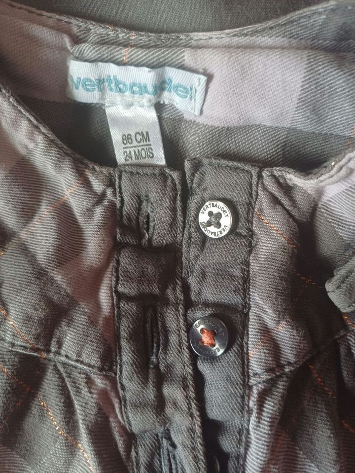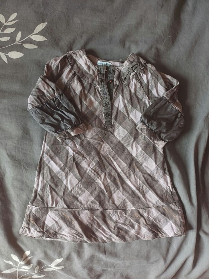 Tunique / blouse à carreaux Marque Verbaudet Taille 24 mois Très peu porté - Très bon état Couleurs : gris et blanc avec liseret doré
