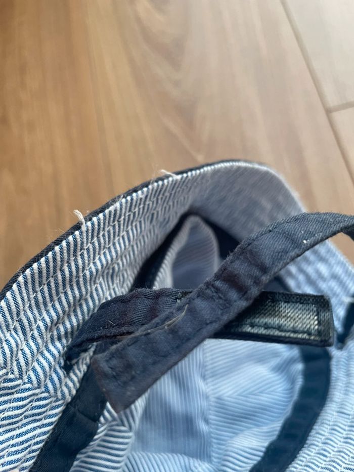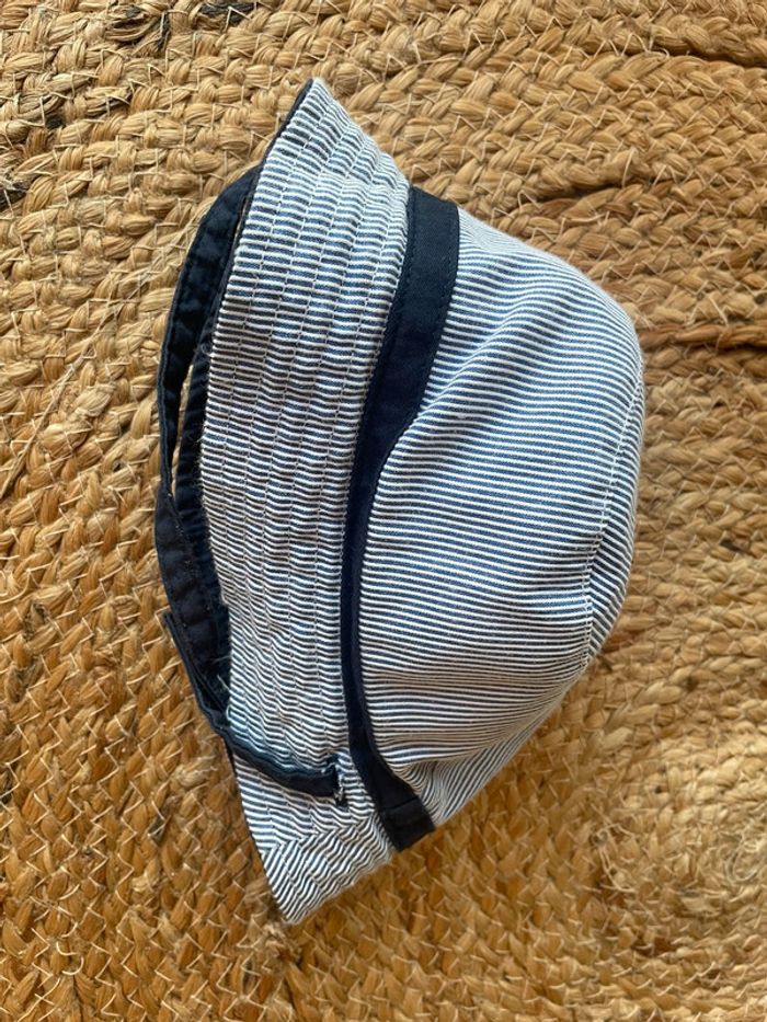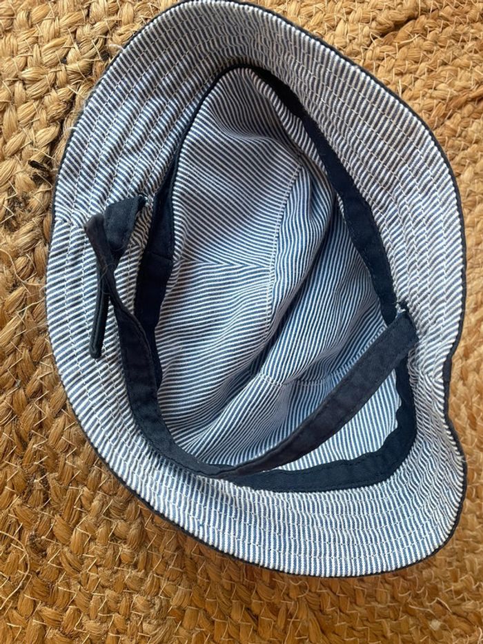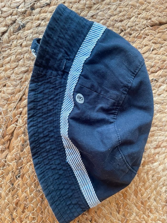 Réversible. Mixte. Attache avec scratch. Porté mais très bon état encore ! Bleu marine et rayures bleues. Plus d’étiquettes mais taille 6-12 mois. Réductions possibles en lot #mahunopi6mois #mahunopi9mois #mahunopi12mois