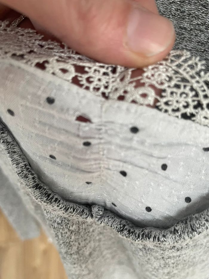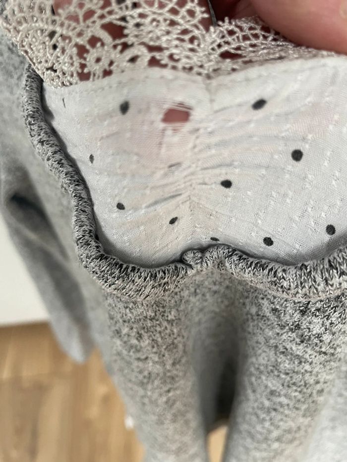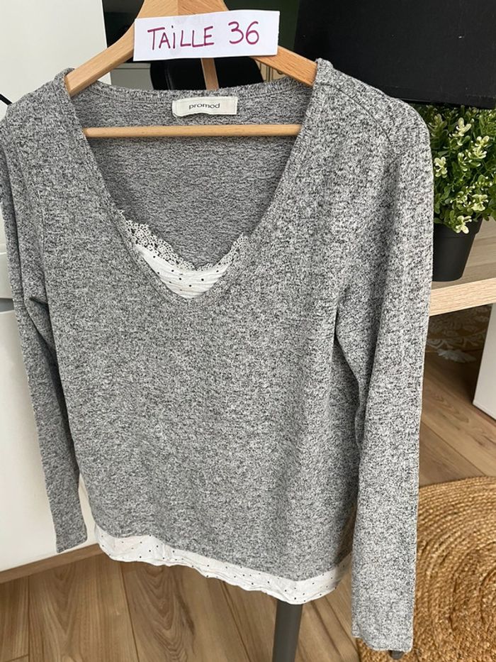 Détail dentelle dans le décolleté et bas du pull ⚠️ petit trou à peine visible Réductions possibles en lot #mahunopifemme