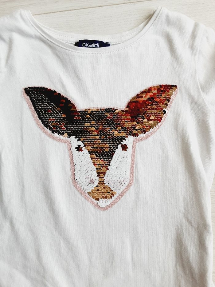 Vêtement fille tee-shirt manches longues tête de biche à sequins Okaïdi 3 ans