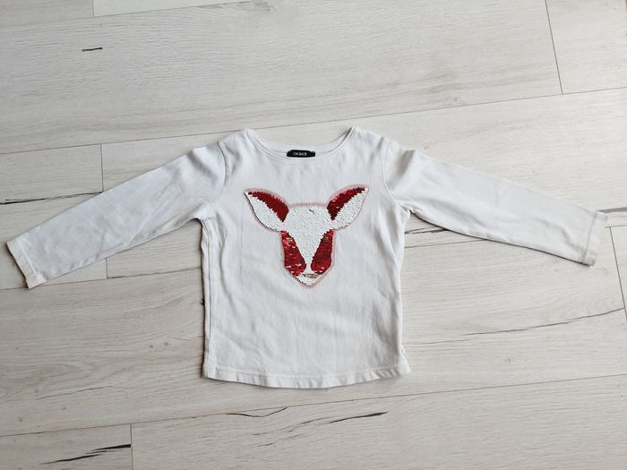 Vêtement fille tee-shirt manches longues tête de biche à sequins Okaïdi 3 ans - photo numéro 1