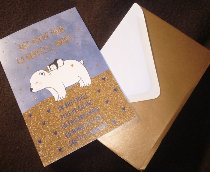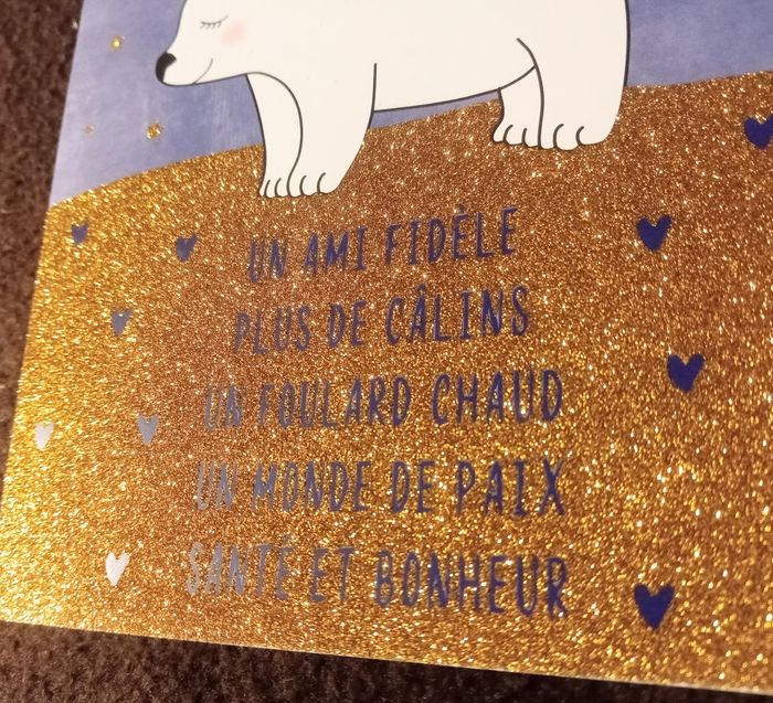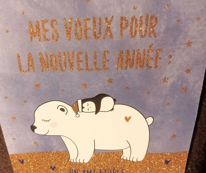 Jolie carte de vœux acheter en papeterie Neuve avec son enveloppe doré Vœux pour la nouvelle année Un ami fidèle plus de câlins un foulard chaud Un monde de pets