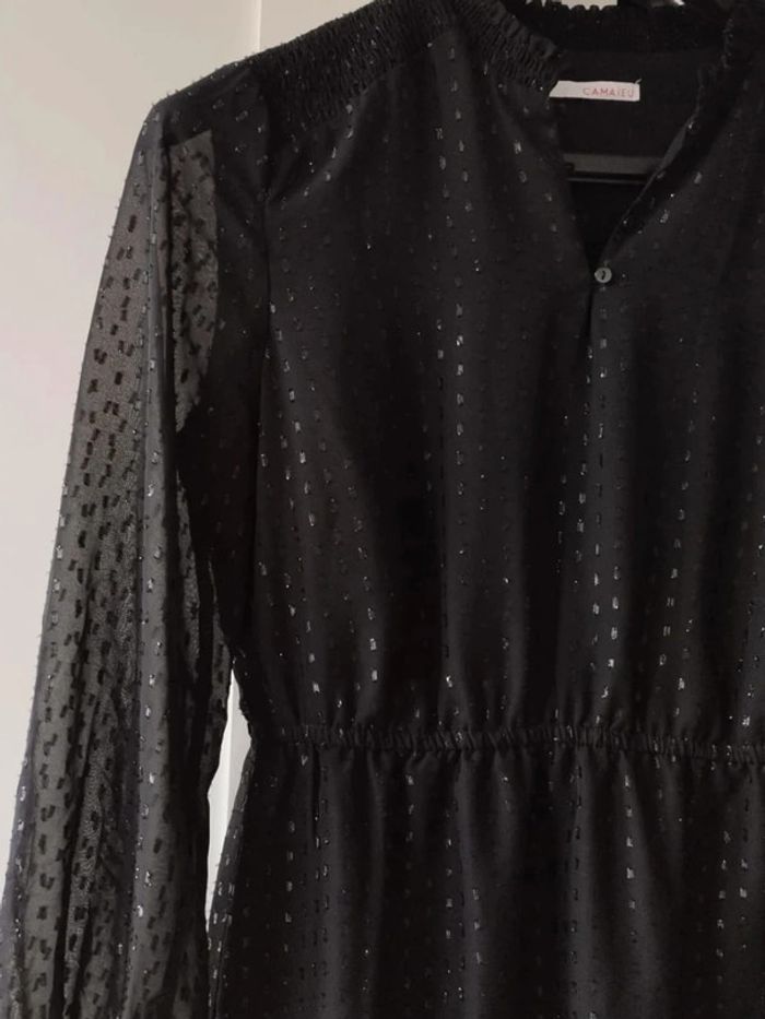 🍁Article : très jolie robe manches longues transparent élastique a la ceinture, avec des détails argentés