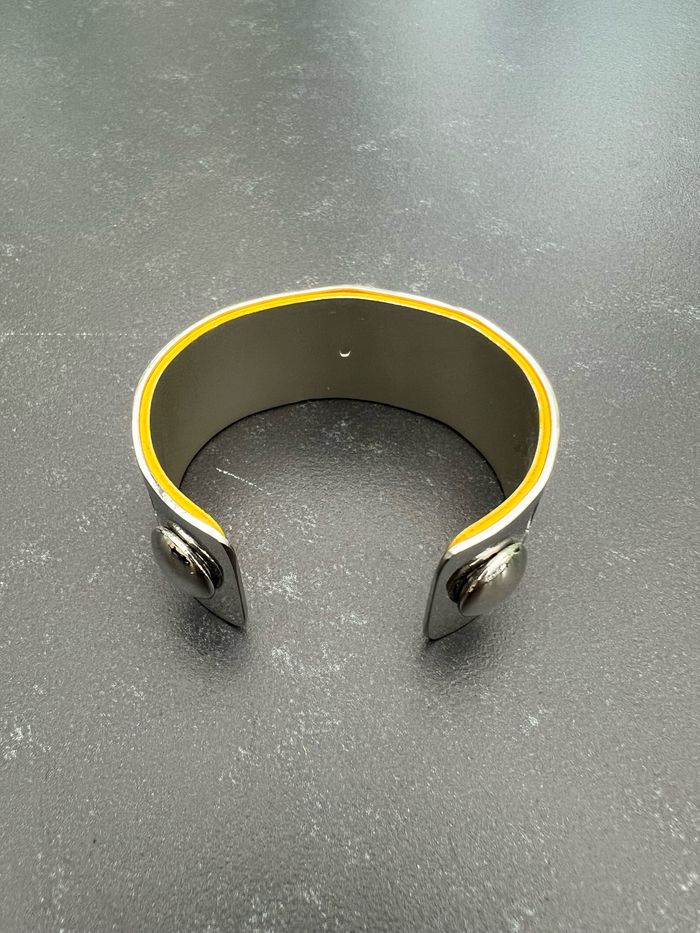 Bracelet couleur argenté, réversible de couleur jaune ou gris. En parfait état. Envoi rapide et soigné, réduction automatique dès 2 articles sélectionnés. Mes autres ventes ici: #diversugolola #braceletfemme #braceletreversible #bijouxfantaisie