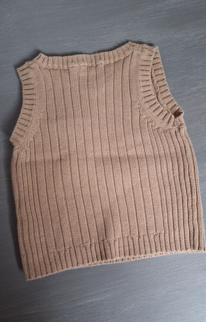 GARÇON 9 MOIS N°1155 Pull sans manche Marron clair 100% coton Taille 9 mois Tape à l 'oeil 3,50€ #kelly_garçon9mois