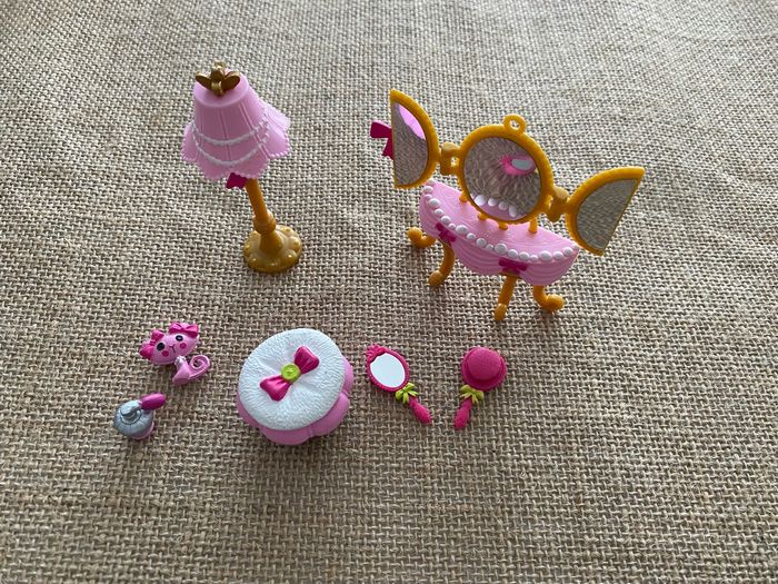 Une coiffeuse pour meubler la maison merveilleuse de Mini Lalaloopsy. Le lot comprend une coiffeuse, 1 lampe, 1 petit coffre, 1 flacon de parfum, 1 brosse ainsi qu’un miroir. giochipreziosi11