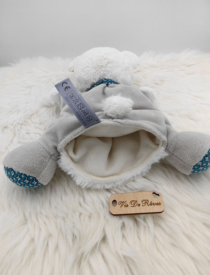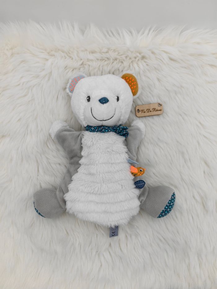 Doudou marionnette Ours blanc gris Arthur Nicotoy - photo numéro 6