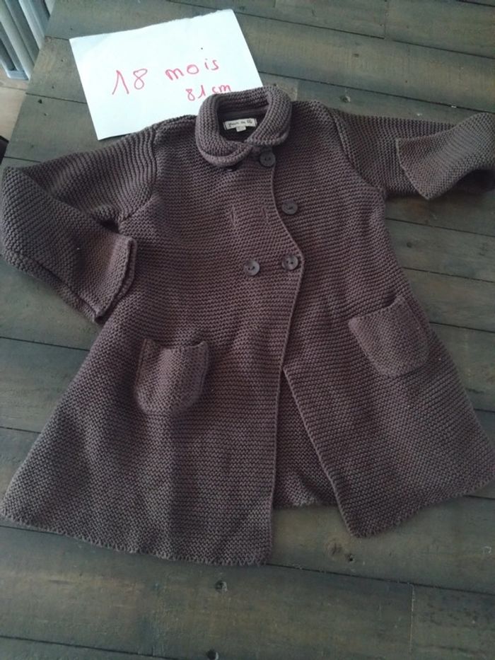 Gilet long marron grain de blé fille 18 mois - photo numéro 1