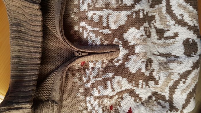 Pull Camionneur Jacquard Motif Loup Neuf Pull Camionneur Jacquard Motif Loup Neuf en L et XL Pull Camionneur Jacquard Motif Loup : Très original, le motif jacquard Loup sur ce pull en tricot (550 g/m² env.) invite à l’évasion et se démarque avec style. Côté confort, le col montant zippé double épaisseur est en côtes 2x2 légèrement élastiquées pour apporter une meilleure tenue, tout comme les poignets et la base. Coupe ample. Un beau modèle hivernal et automnale. 100 % acrylique pour un entretien facile. Neuf dans son emballage