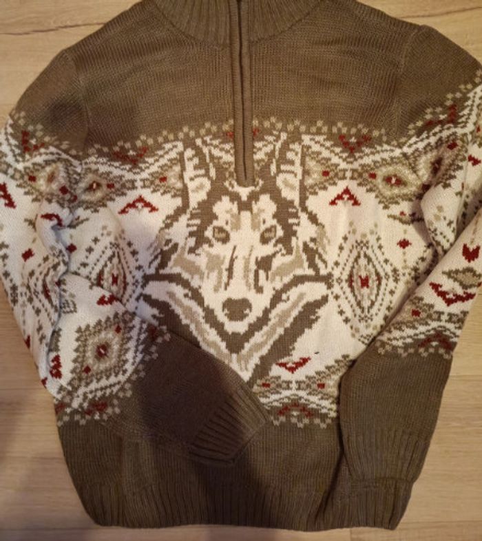 Pull Camionneur Jacquard Motif Loup Neuf - photo numéro 1