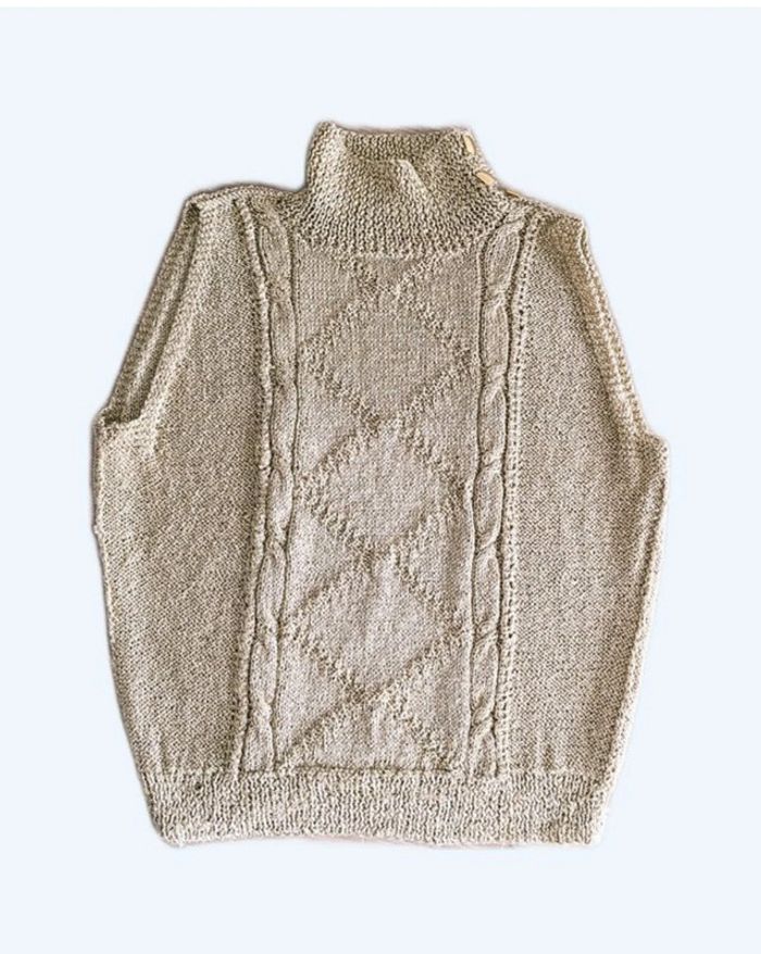 Pull sans manche maille Or Modèle unique fait main Réalisé avec : Phildar - Pelote de Laine Phil Brillant de 25g - Laine à Tricoter - 15% Polyester,85% Viscose - Couleur Or Jamais porté Sans manche 3 boutons dorés sur épaules Torsadé sur l'avant uniquement Maille souple et extensible Correspond à une taille 36/38 sur patron Aisselle a aisselle 47 cm Tour de taille a plat 37 cm Longueur totale (hors col) 51 cm