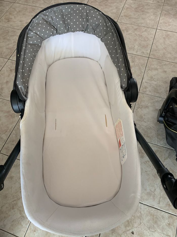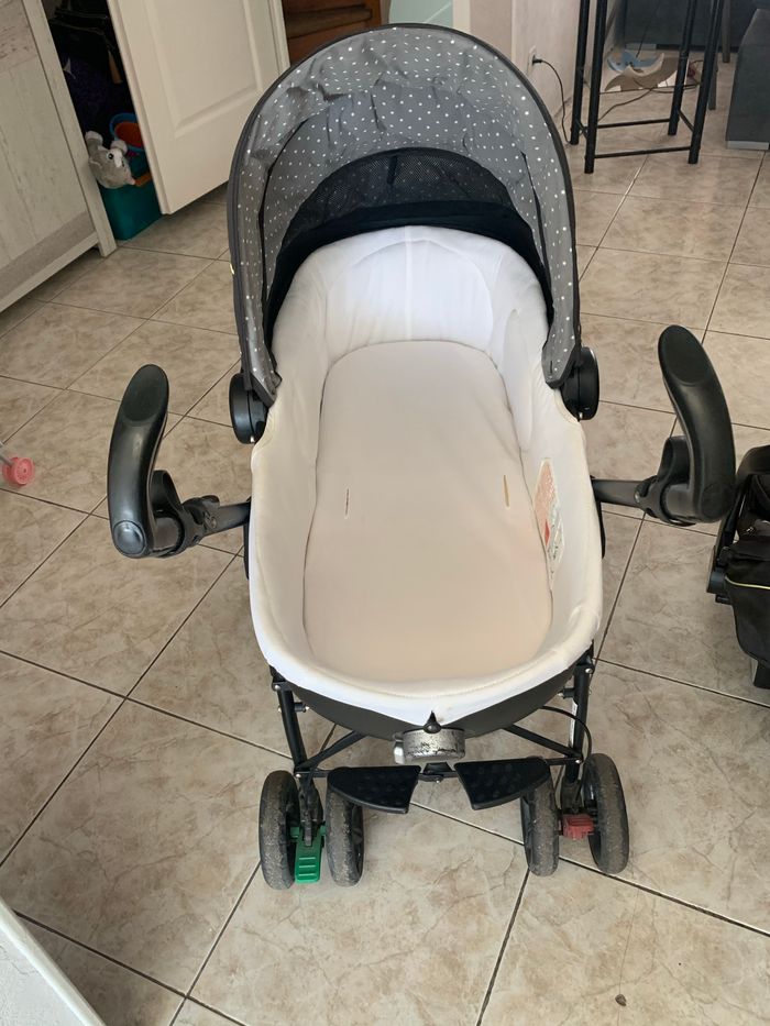 Vends poussette avec nacelle et cosy de marque vertbaudet. Couleur noir à l’extérieur, intérieur gris avec étoiles blanche. Bon état général