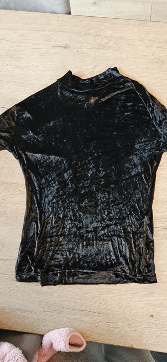 Joli t shirt noir satiné à manches courtes. Taille 1 qui convient à du 38/40. Ma fille ne l a mis qu une fois. Très souple, tout doux et léger #deborahtock_femmeS/M