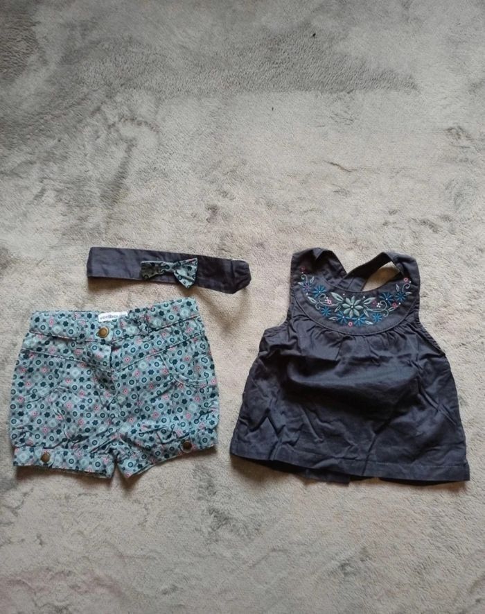Ensemble 3 mois Short+ tunique+ bandeau