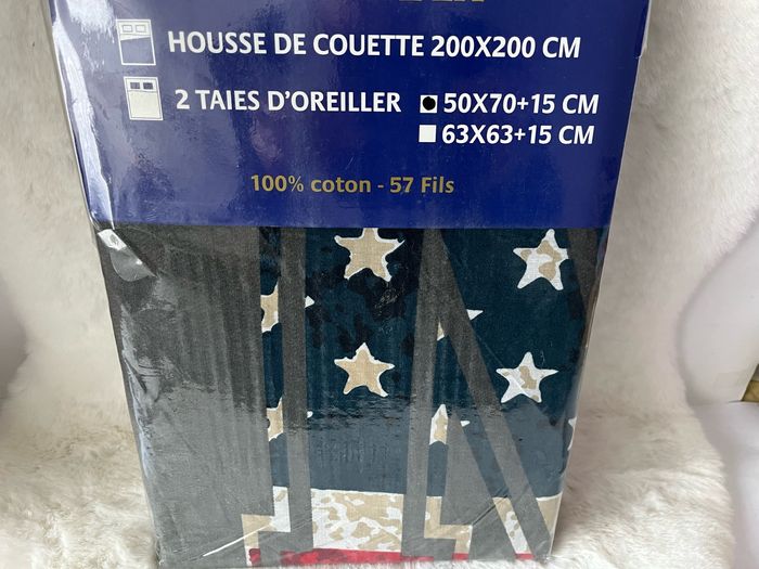 Housse de couette 200 x 200 cm gris, bleu et rouge + 2 taies d oreiller 100 % coton - photo numéro 1