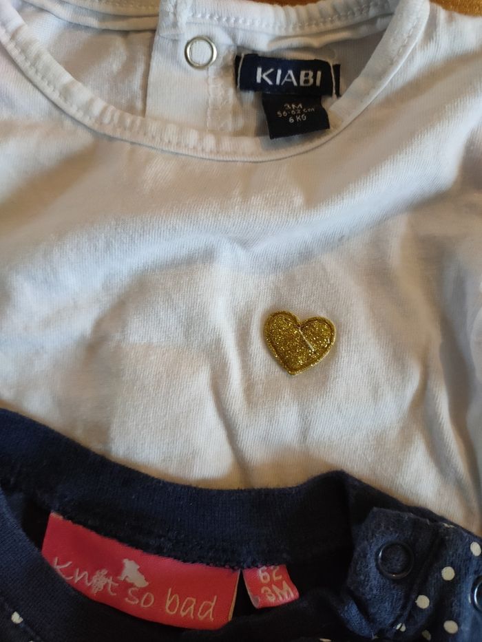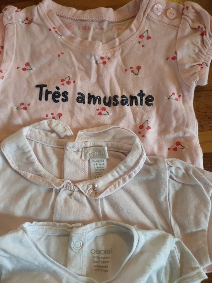 Lot de 5 t-shirts manches courtes, taille 3 mois. 2 obaibi, 1 Gémo, 1 Kiabi et 1 inconnu