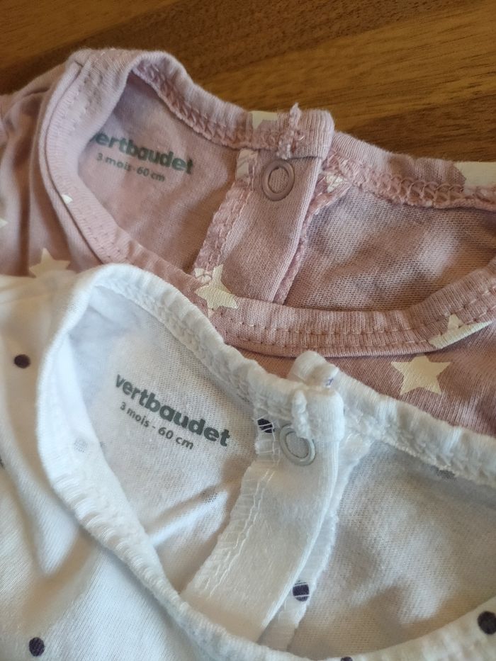 Lot de 2 combishorts Verbaudet, taille 3 mois. Jamais portés