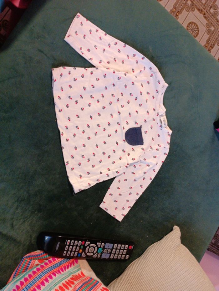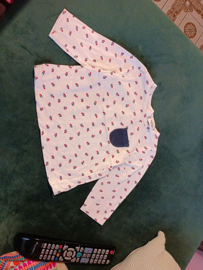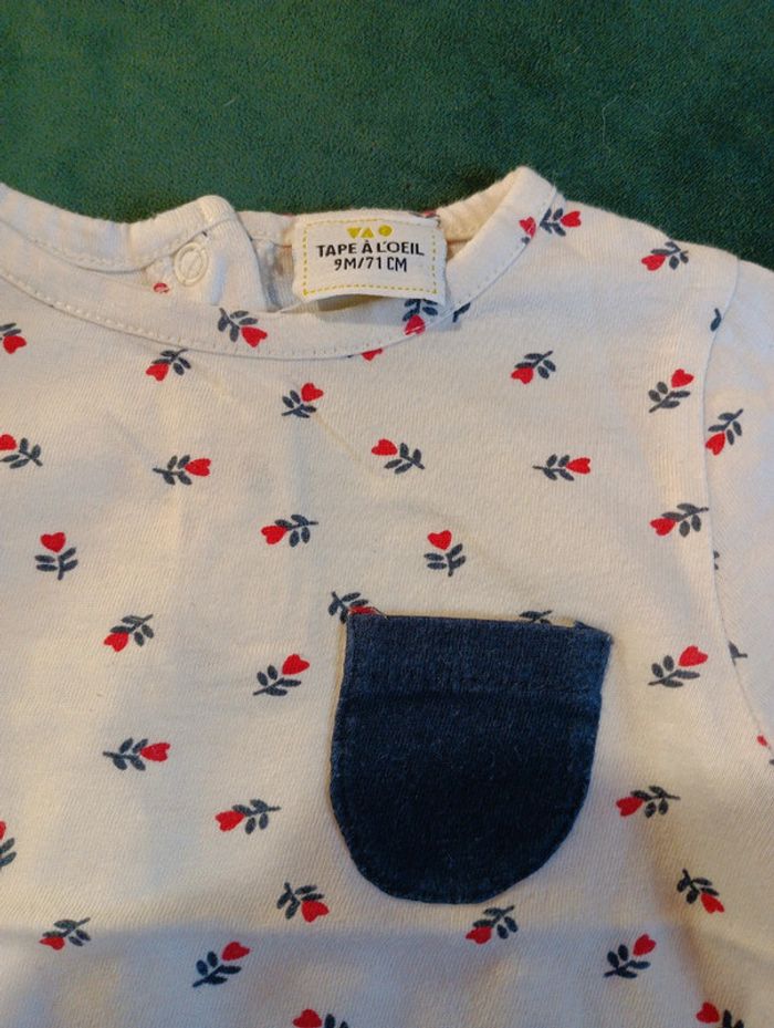 Tee-shirt manches longues, Fleuri, Petite poche bleue marine, 9 mois - 71 cm