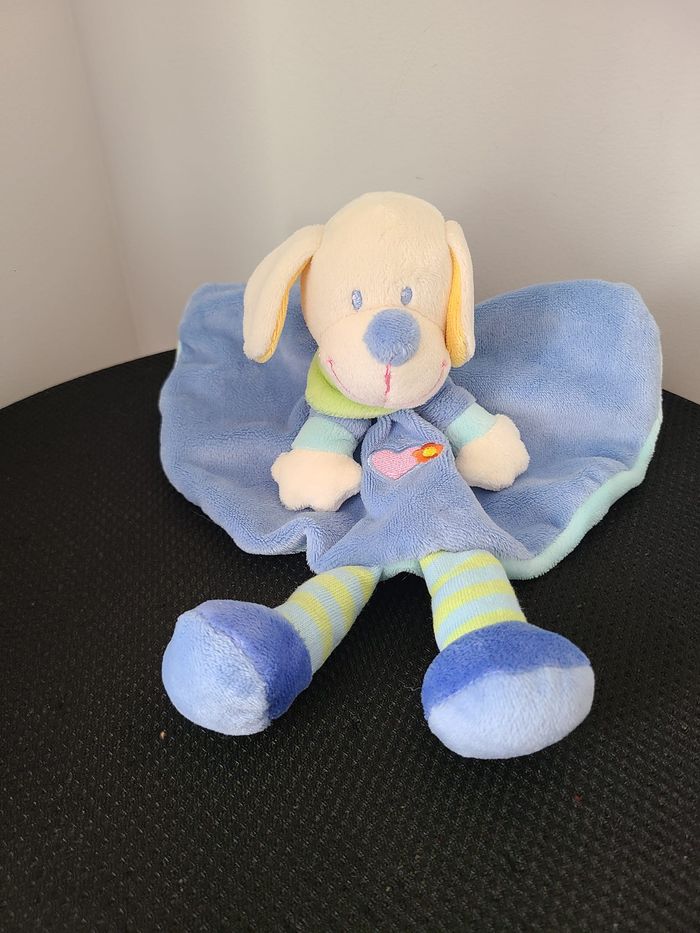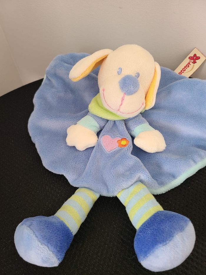 DOUDOU PLAT ROND CHIEN BLEU COEUR ROSE NICOTOY 129