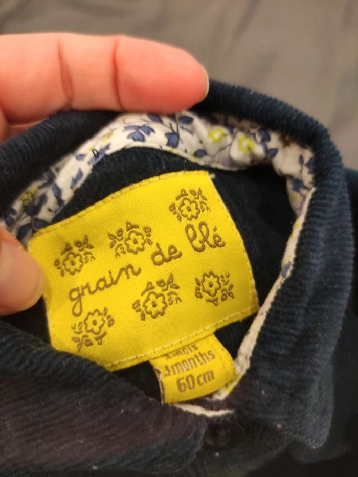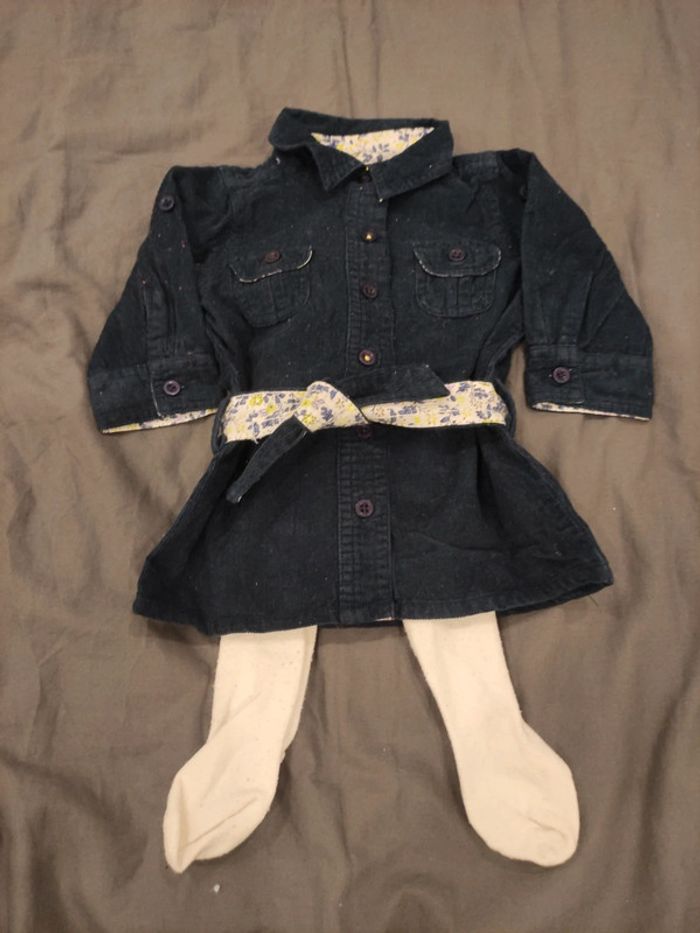 Robe tunique en velours côtelé avec une ceinture réversible. Livrée avec un collant blanc. Le tout en très bon état.