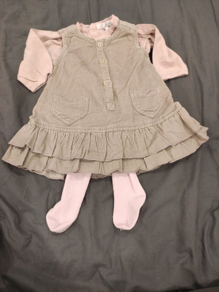 Composé d'une robe velours côtelé doublure coton, d'un chemisier coton boutonnière intégrale dos et un collant. Très bon état