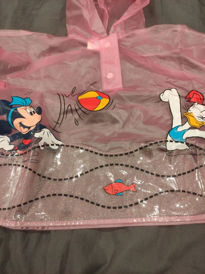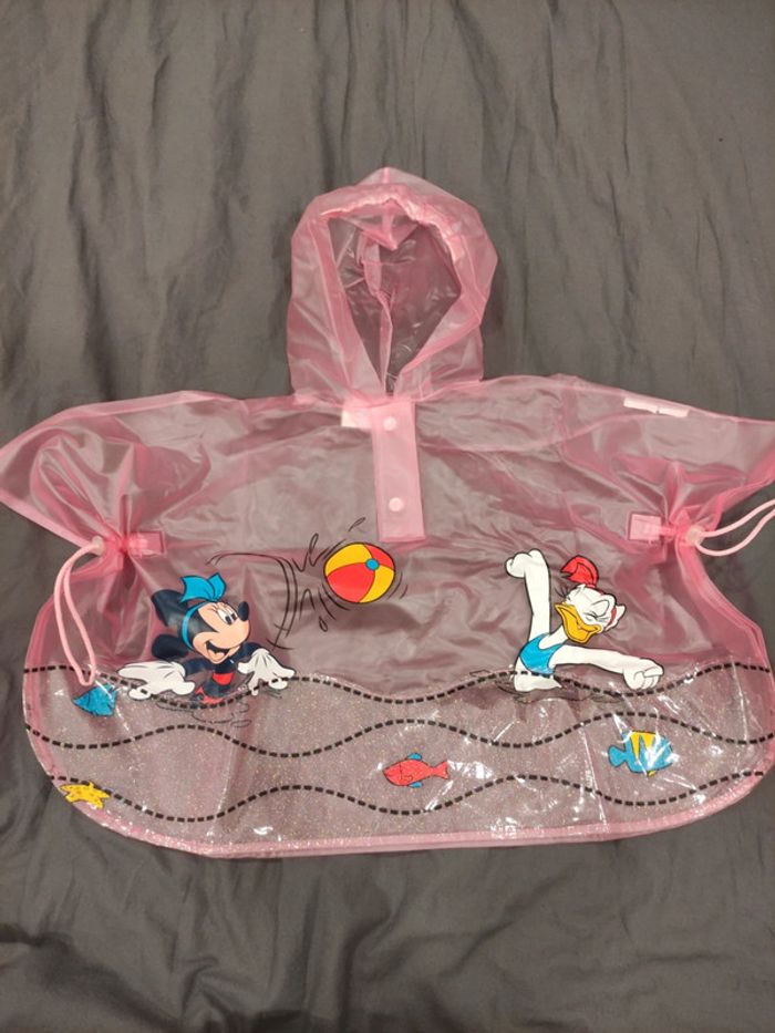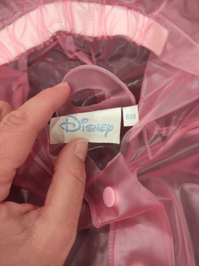 Poncho imperméable 6 mois mais peut convenir jusqu'à environ 18mois. Très bon état mais un tout petit peu déchiré sur une soudure de la bordure des pressions. Cela ne se voit pas et ne retire en rien l'imperméabilité du produit.