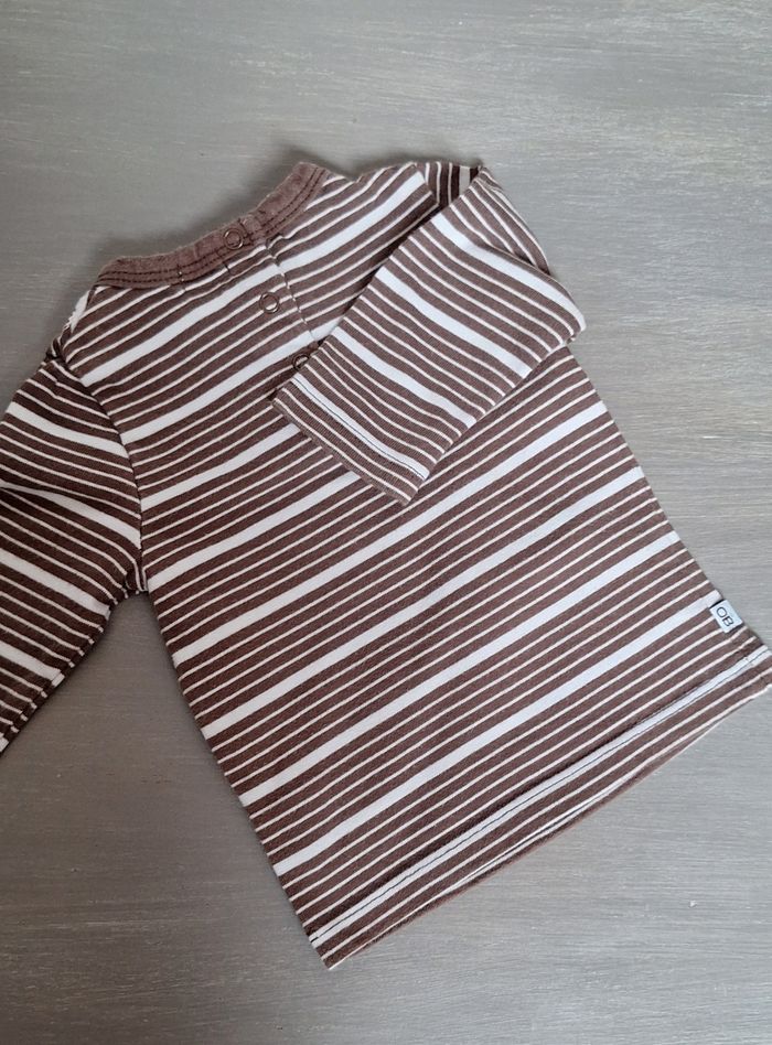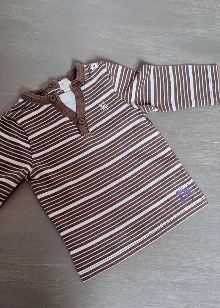 GARÇON 3 MOIS N°986 Maillot rayé lm Bleu ciel / marron Pression au dos 100% coton Taille 3 mois Obaibi 2,50€ #kelly_garçon3mois