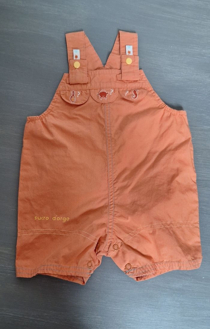 GARÇON 3 MOIS N°987 Salopette été Orange Pression entre jambes 100% coton Taille 3 mois Sucre d orge 2€ #kelly_garçon3mois