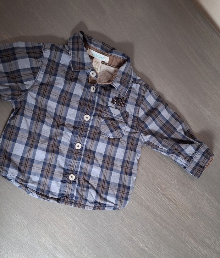 GARÇON 3 MOIS N°991 Chemise carreaux Gris , 2 tons de bleu Hiver , doublé Taille 3 mois Obaïbi 4€ #kelly_garçon3mois