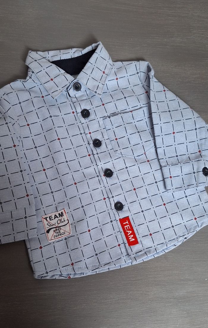 GARÇON 3 MOIS N°1168 Chemise imprimée Bleu 2btons Bouton 47% coton 53% polyester Taille 3 mois Chicaprie 2,50€ #kelly_garçon3mois