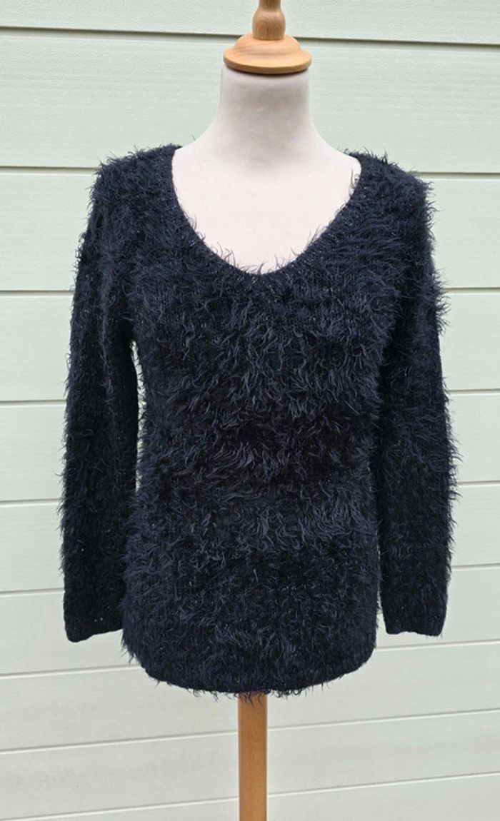 Pull à poils noir fils argentés Taille M