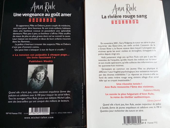 Livres Ann Rule grand format Une vengeance au goût amer La rivière rouge sang #claireconcours