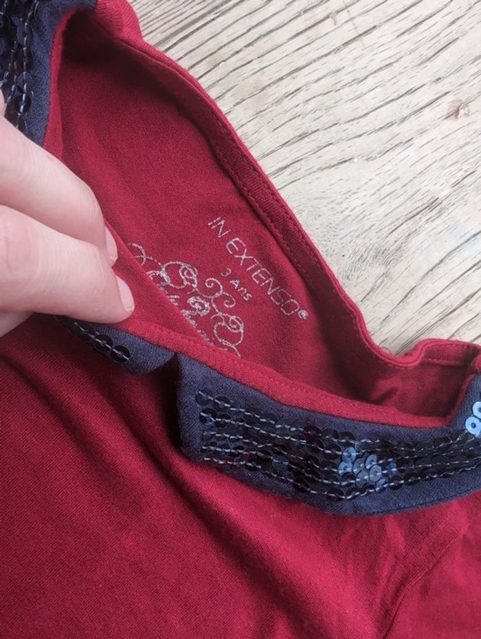 Tee shirt manches longues rouge  3 ans col sequin - photo numéro 3
