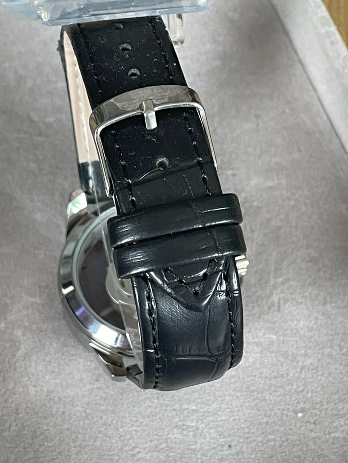 Montre squelette avec bracelet en cuir noir et cadran en acier inoxydable Cadran de 39mm En parfait état