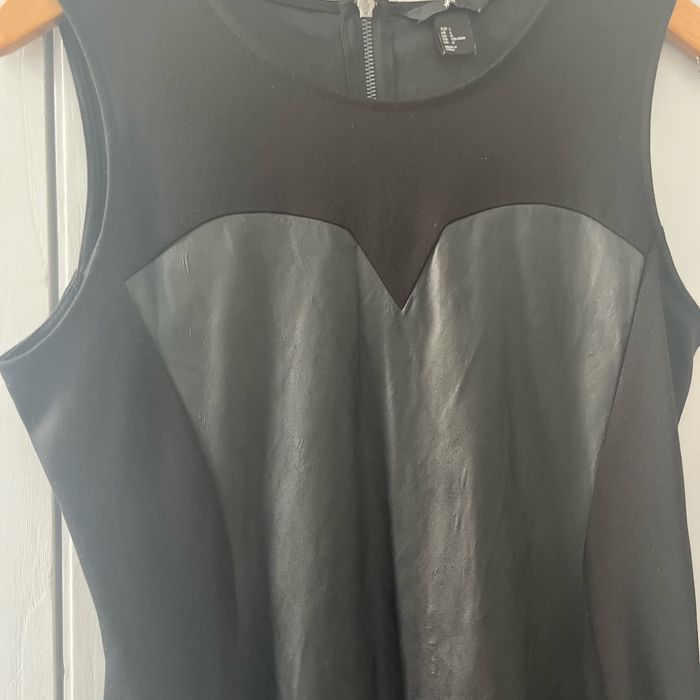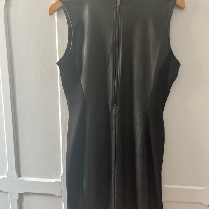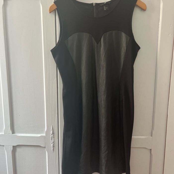 Robe noire très féminine Taille 40 Bi matière. Coton lycra et similicuir Très agréable à porter Très bon état À porter seule. En été. Ou avec sous pull l hiver