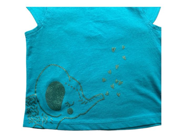 Débardeur turquoise à motif éléphant coeur.