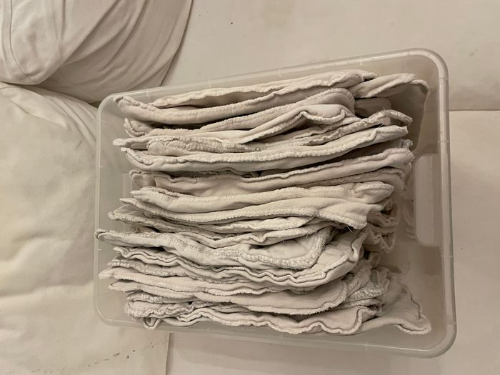 31 absorbants coton taille 2. Compatible avec les tailles de couche M et L de la marque HAMAC. 30 sont doublés par mes soins avec une couche d'absorbant supplémentaire tissu ZORB® pour améliorer la capacité d'absorption. Valeur neuf 270€. Tissu ZORB® 21€/metre.