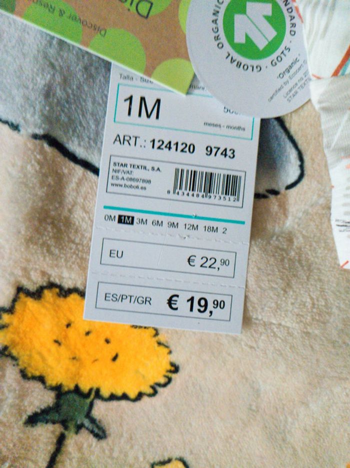 Combinaison short 1 mois boboli neuf . Prix neuf 22,90€. Certification GOTS (Global Organic Textile Standard).