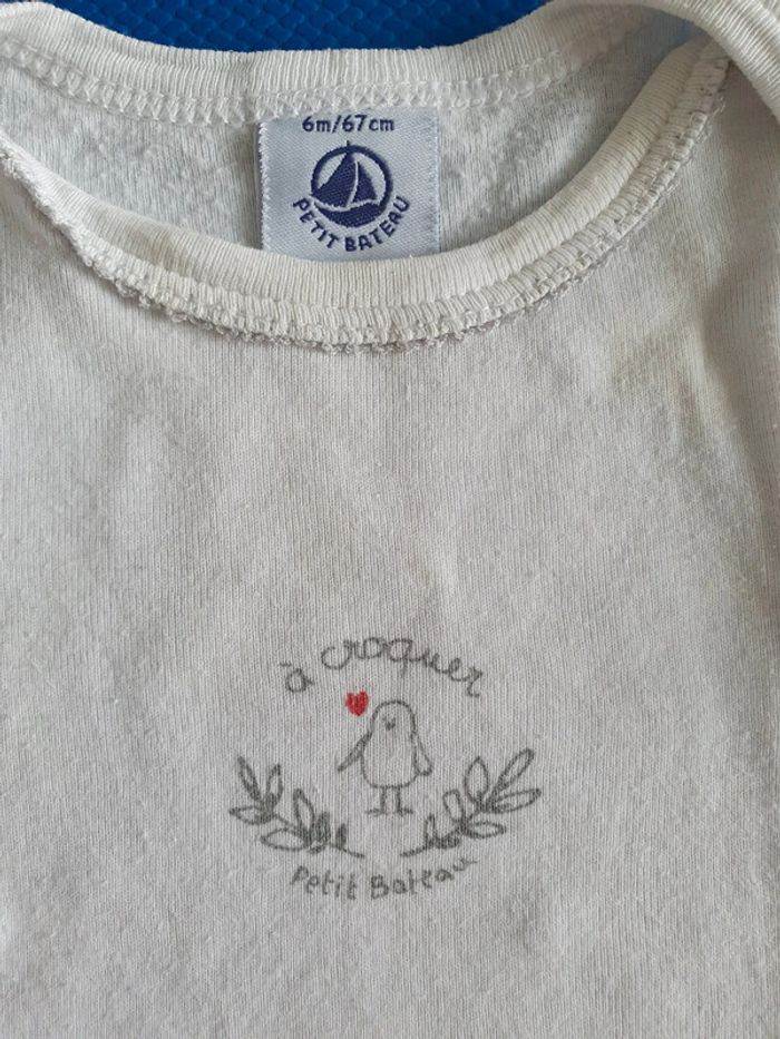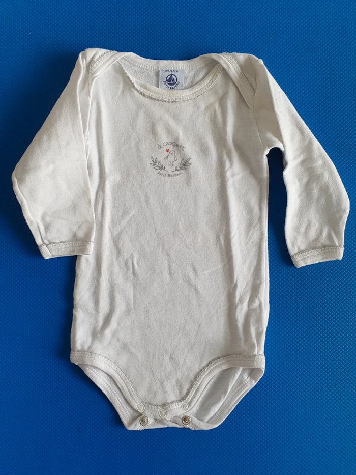 Body manches longues blanc. Motif oiseau, cœur, à croquer. Unisexe. En très bon état.