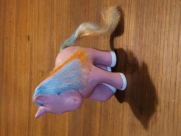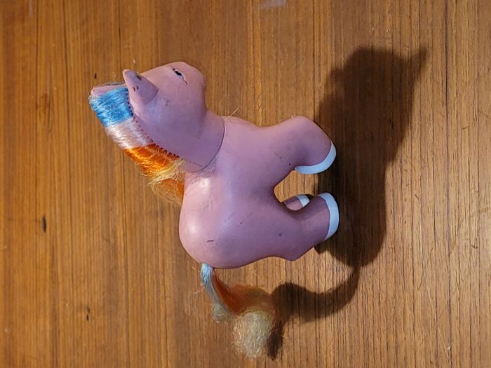 années 80 de 1984 poney rose sabot blanc crinière et queue arc-en-ciel hauteur du grand environ 12,5 cm dans l'état des photos, qui font partie du descriptif